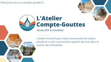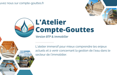 L’eau est un enjeu stratégique pour le BTP et l’immobilier : chantiers, matériaux, réglementation, gestion des eaux. L’Atelier Compte-Gouttes vous aide à mieux appréhender ces défis et à vous y préparer.