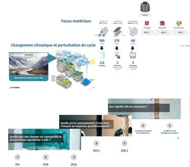 Une introduction sous forme de quiz mouvant afin d'avoir une vision globale du cycle de l'eau, de l’impact du changement climatique et des chiffres clés en tête.